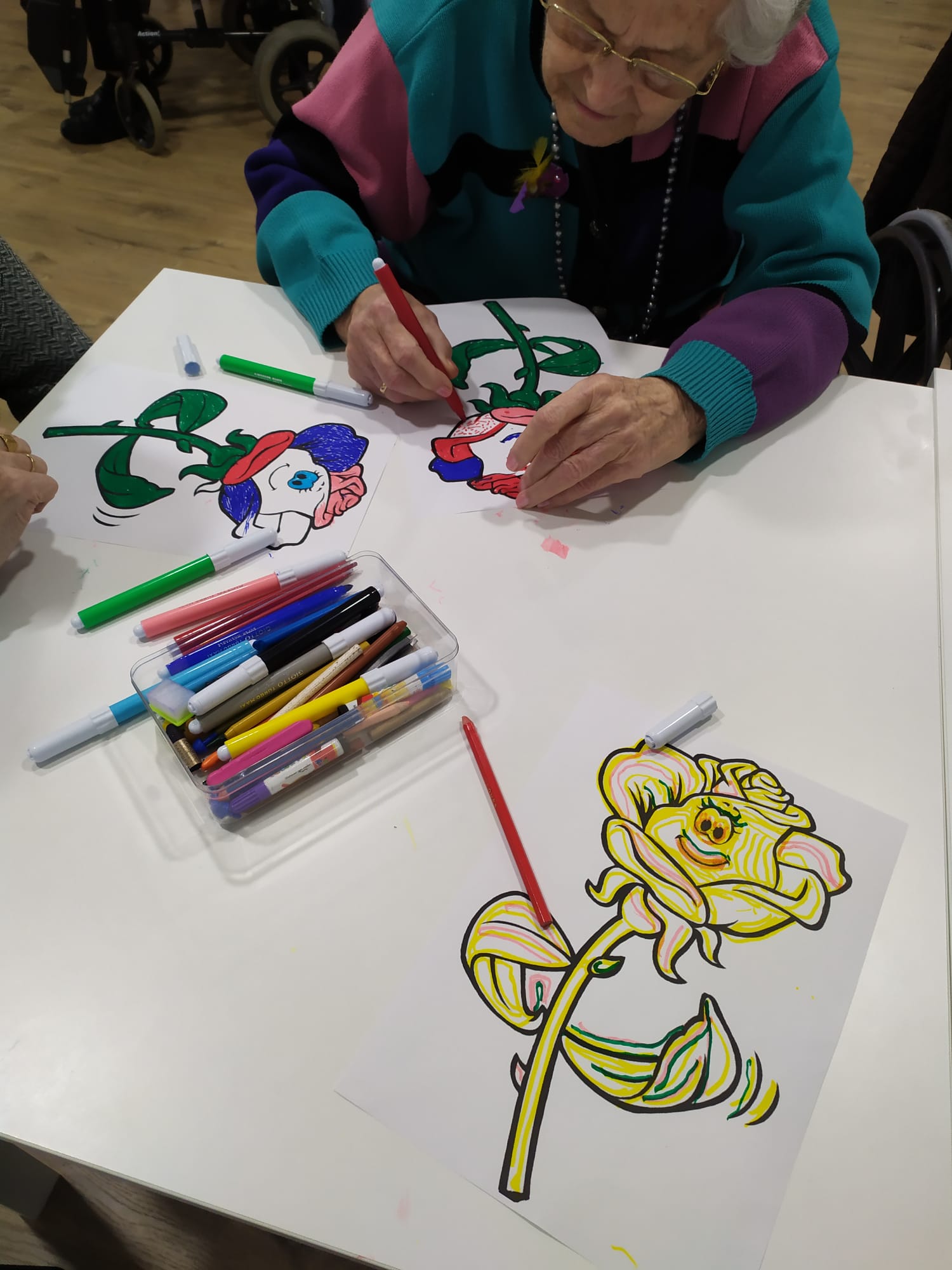 Hoy, 23 de abril, hemos celebrado San Jordi con nuestros mayores. A falta de rosas naturales, han estado dibujando unas preciosas. Esperamos que el año que viene vuelvan a oler las flores de verdad, aunque las que han creado ellos no desmerecen en nada en colorido a las naturales.